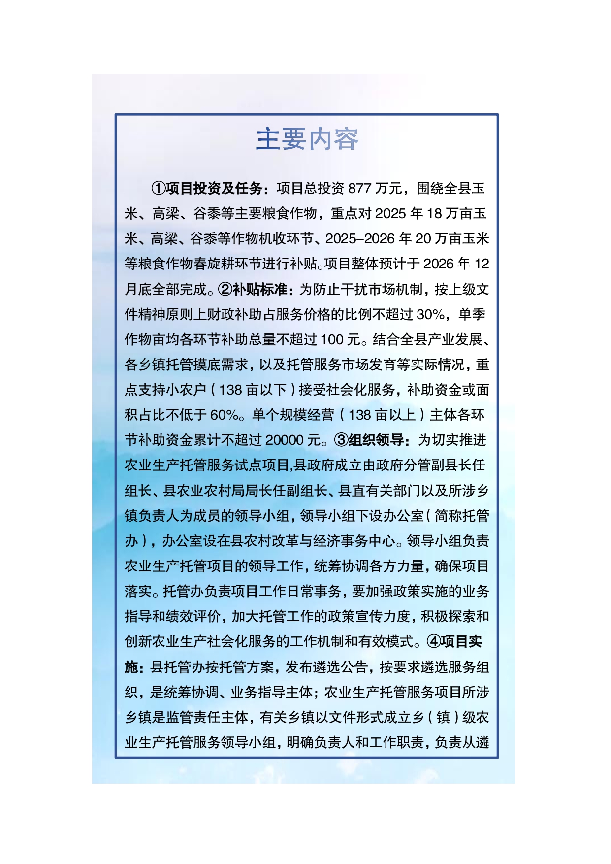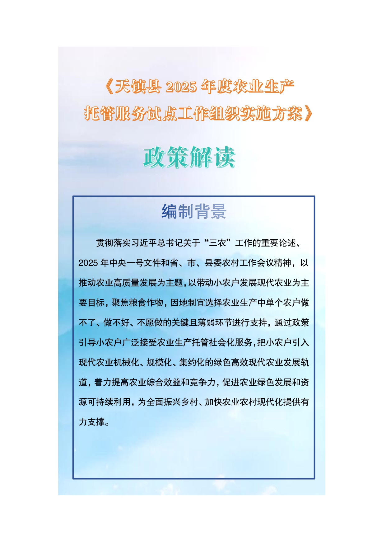 【图解】关于《天镇县2025年度农业生产托管服务试点工作组织实施方案》的政策解读